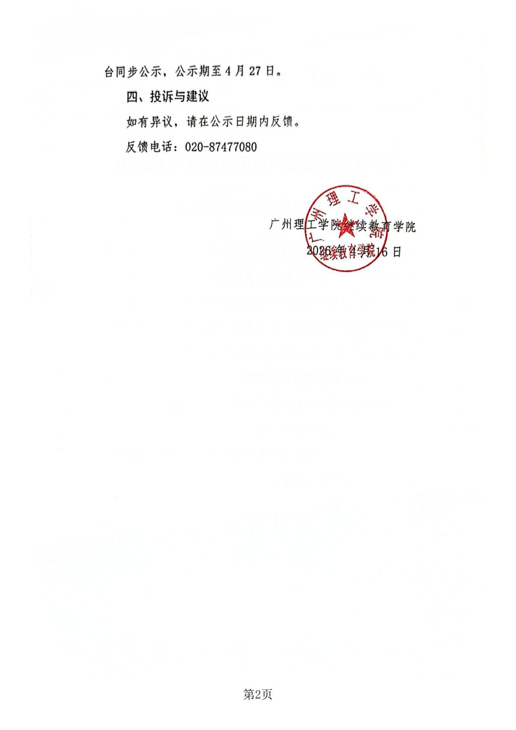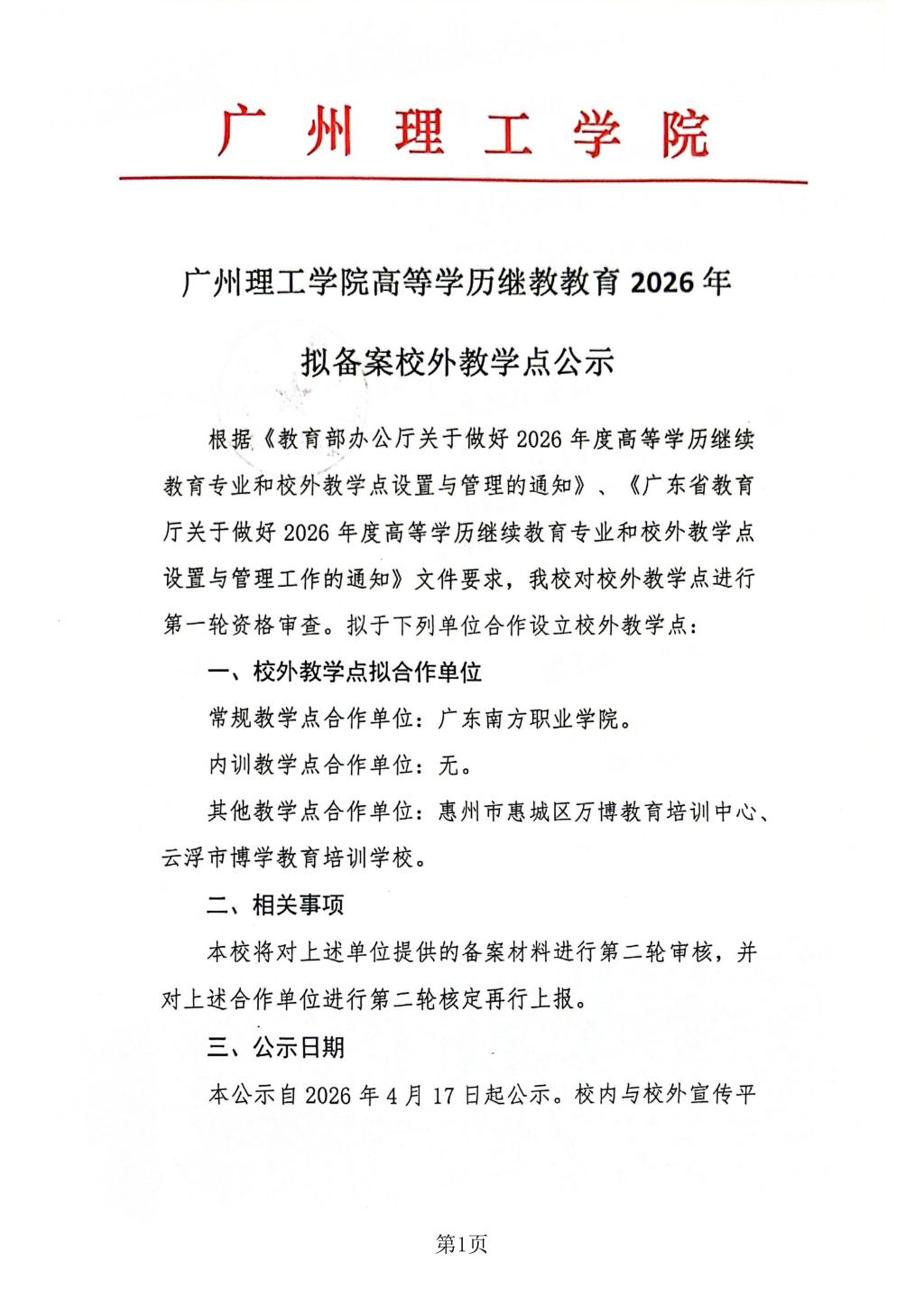 广州理工学院高等学历继教教育2026年拟备案校外教学点公示
